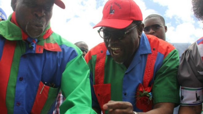 Wanachama wa chama cha SWAPO Namibia wakifurahia ushindi. |